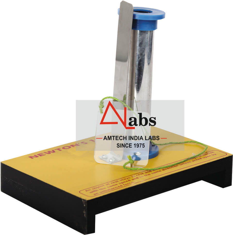This apparatus is designed to clearly demonstrate Newton’s First Law of Motion, which states that an object at rest stays at rest and an object in motion stays in motion unless acted upon by an external force. It’s an ideal teaching aid for physics classrooms, labs, and science exhibitions.
